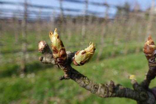 Zaradi otoplitve je razvoj pečkarjev v zadnjem tednu hitro napredoval. Večina sort hrušk v Vipavski dolini že brsti (fenofaza BBCH 53). Začetek brstenja smo zabeležili tudi pri zgodnjih sortah jablan na izpostavljenih legah in nižinskih legah. Priporočamo, da v naslednjih dneh opravite predspomladansko škropljenje brstečih hrušk in jablan s pripravki na osnovi bakra.