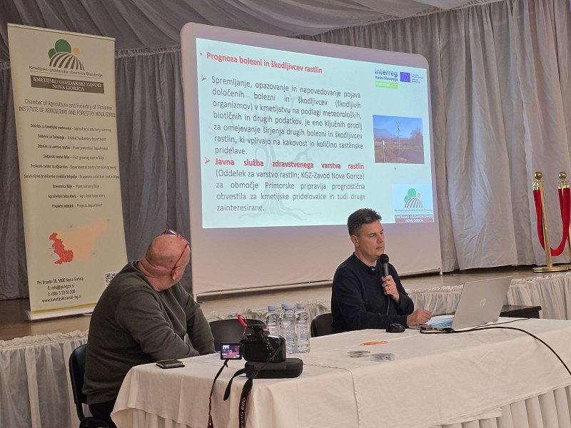 V prvem delu posveta je mag. Urška Klančar predstavila pregled letine 2025 po posameznih kulturah, pri čemer je posebej izpostavila vse večjo škodo, ki jo v zadnjih letih na kmetijskih površinah povzroča divjad. Dr. Mojca Rot je opozorila na novega karantenskega škodljivca v naši bližini – orientalsko plodovo muho (Bactrocera dorsalis), ki so jo nedavno našli v Italiji, nedaleč od slovenske meje. Sledili sta še predavanji Rahele Ipavec o poskusu zatiranja breskove muhe (Ceratitis capitata) na kakiju ter Julije Cocetta Dariž, ki je predstavila črno figovo muho (Silba adipata), figovega rilčkarja (Aclees taiwanensis) in japonskega hrošča (Popillia japonica).