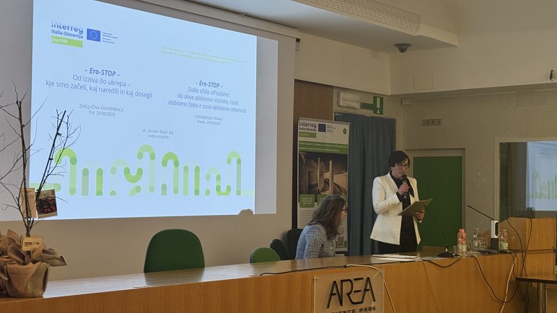 Prav zato smo v okviru programa Interreg VI-A Italija-Slovenija leta 2024 osnovali čezmejni projekt Ero-STOP – »Napredni in trajnostni pristopi k preprečevanju erozije tal«, v katerem smo strokovnjaki in raziskovalci iz Slovenije in Italije dve leti raziskovali, kako erozijo bolje razumeti in predvsem, kako zmanjšati obseg erozije in omiliti njene vplive. Projekt smo zaključili s konferenco v Area Science Park v Padričah pri Trstu.